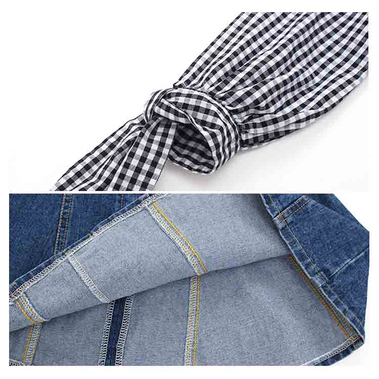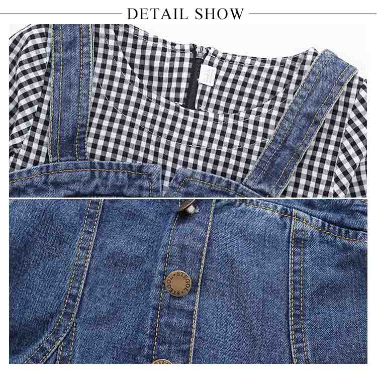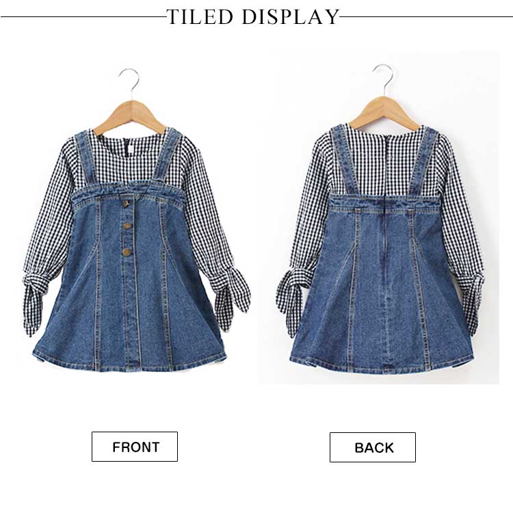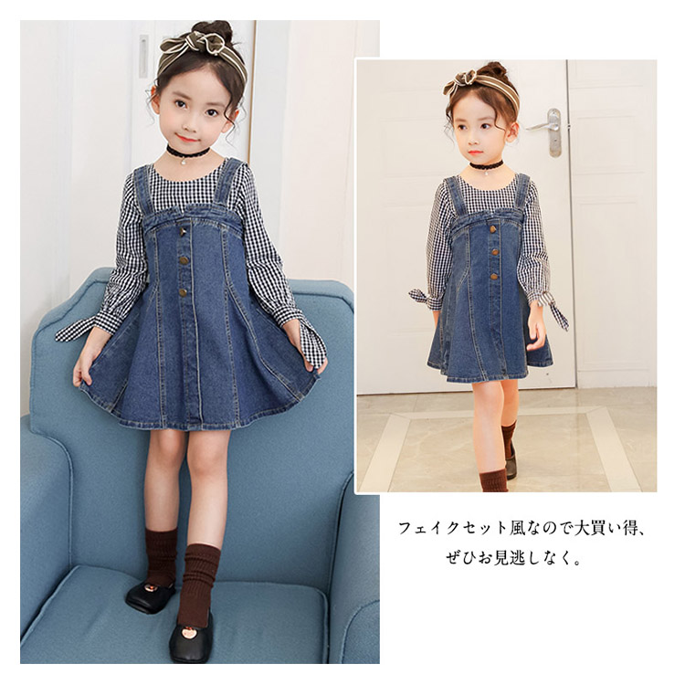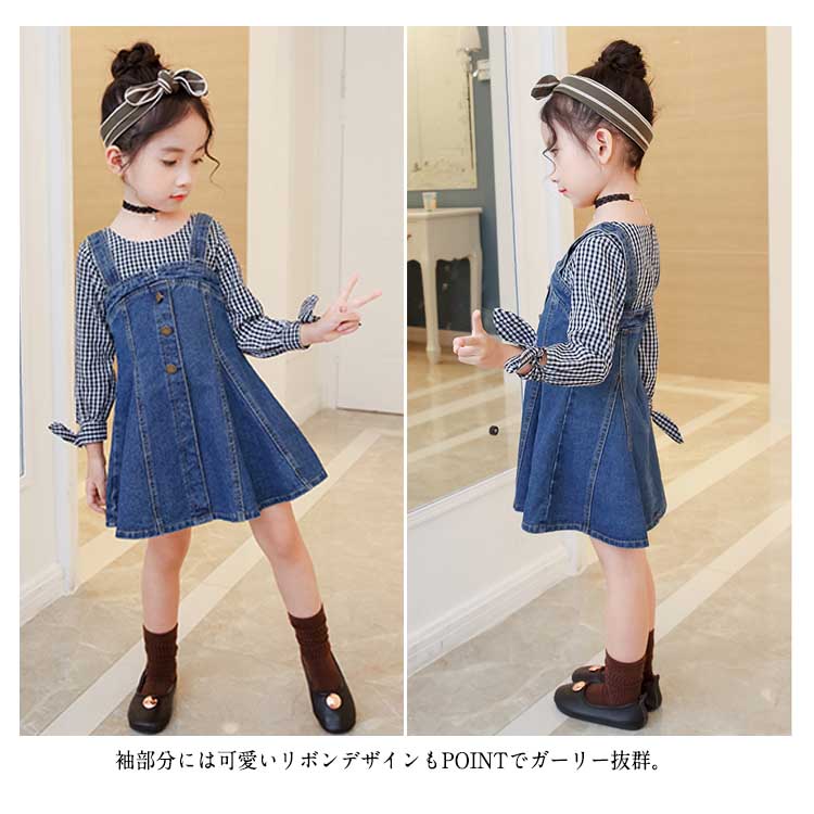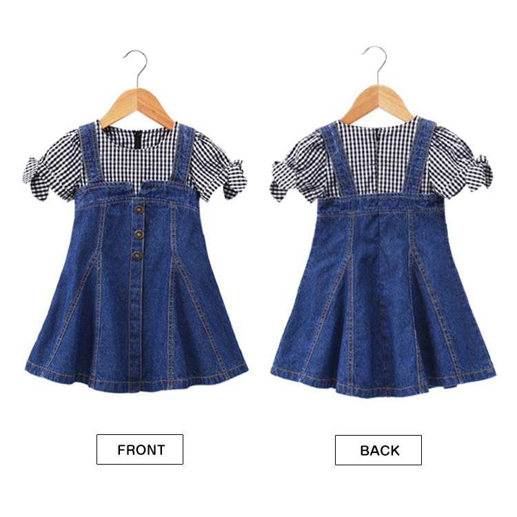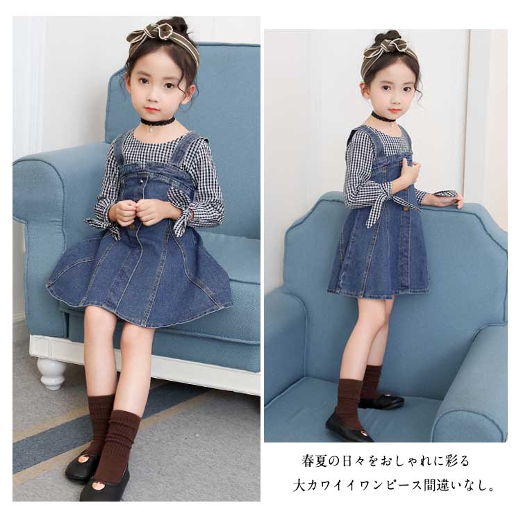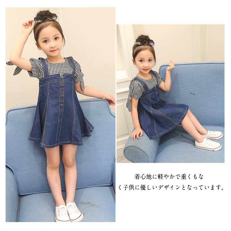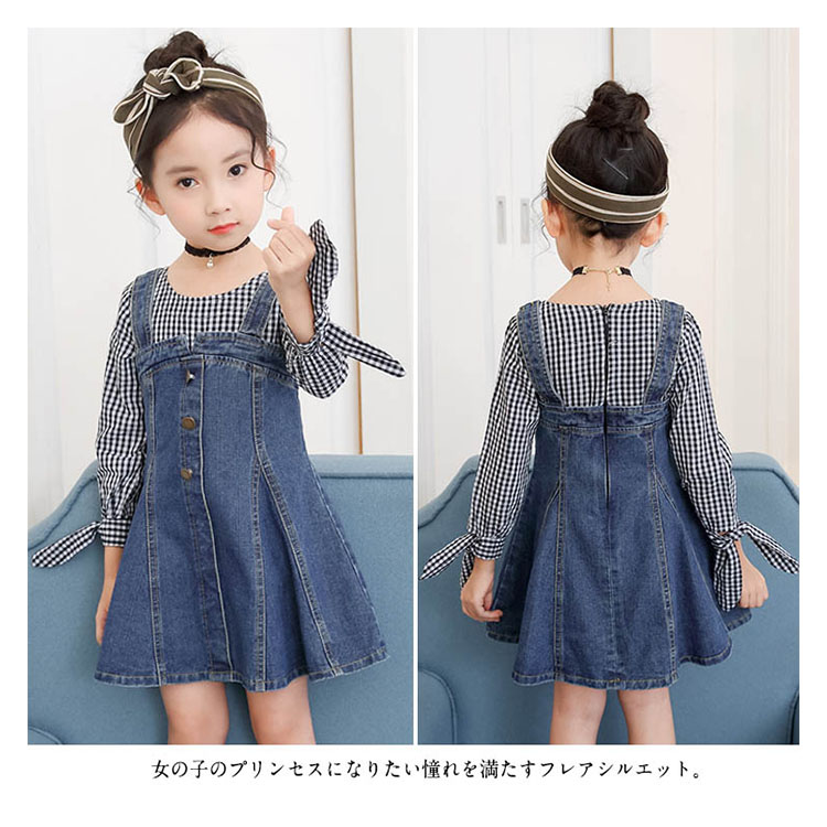 | チェック柄とデニムの合わせたフェイクセット風ワンピース。女の子のプリンセスになりたい憧れを満たすフレアシルエット。袖部分には可愛いリボンデザインもpointでガーリー抜群。着心地に軽やかで重くもなく子供に優しいデザインとなっています。フェイクセット風なので大買い得、ぜひお見逃しなく。春夏の日々をおしゃれに彩る大カワイイワンピース間違いなし。 | |