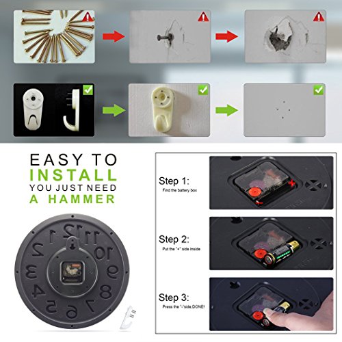 Studio : Elemall Publisher : Elemall Binding : Kitchen Product Description Plumeet 13-Inch Non-Ticking Large Wall Clock for living rooms Battery Operated