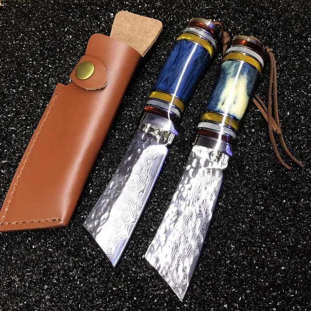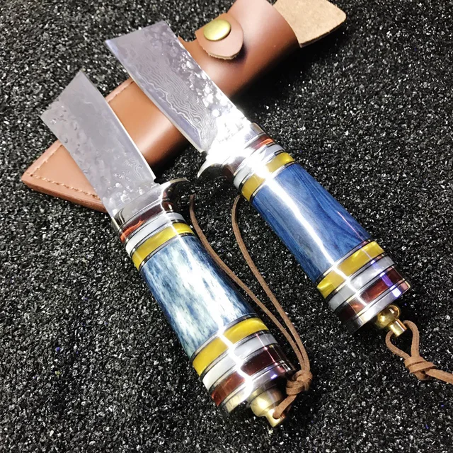 | [해외] 샤프 고정 블레이드 사냥 칼 수제 단조 다마스커스 스틸 캠핑 나이프 58-60HRC 가죽 핸들 생존 전술 도구 |