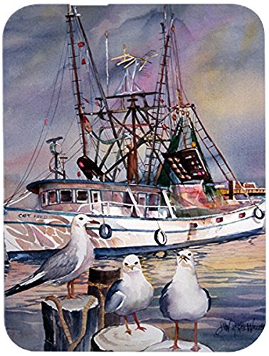 Caroline's Treasures JMK1196LCB Sea Gulls and Shrimp Boats Glass Cutting Board, Large, Multicolor