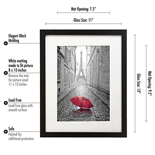 Americanflat 11x13-inch Black Picture Frame - Made to Display Pictures 8x10-inches with Mat or 11x13-inches Witho