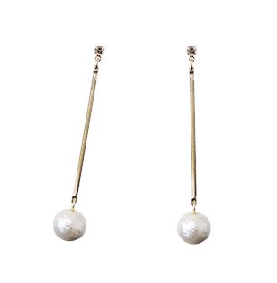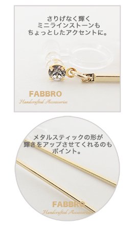 Fabbro [FABBRO] 메탈 스틱 국산 코튼 펄 8mm 라인 스톤 수지제 non홀 피어스(귀걸이) 일본제 악세사리 골드 컬러