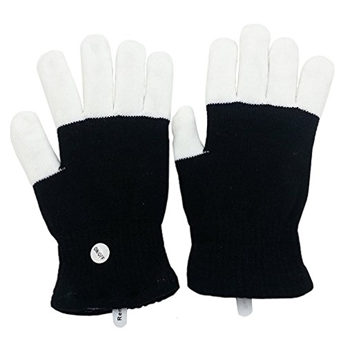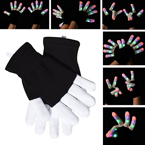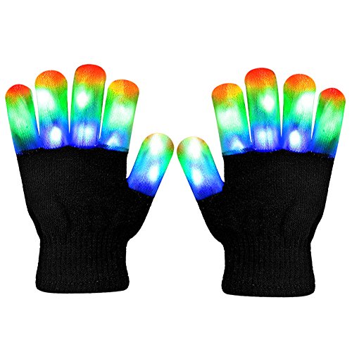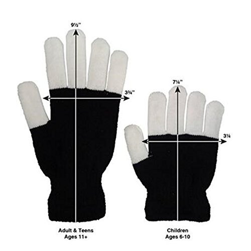Magifire Flashing LED Light Gloves are great for kids and adults of all ages and can be used anywhere your imagination takes you. With our multicolor LED light gloves, you can create your own light show at parties, concerts, weddings, dancing, and other entertainment events. These glowing gloves will sure to be a big hit roller skating or ice skating. Children love light toys at birthday parties, and no clown outfit is complete without multicolor glowing finger gloves! Take them your favorite sporting event - football, hockey games, and show your team support. Make your own glow glove costume, perfect for Halloween. The flashing light gloves will keep your children's hands warm Trick or Treating and provide added safety. Show your enthusiasm for New Year's Eve, July 4th, St. Patrick's Day, Valentine's Day, Flag Day, Memorial Day, Labor Day, and they make great Christmas presents. Can be worn year round from camping and summer nights to cold winter days. Our multicolor glow gloves make great gifts for kids and adults of all ages. For best results use in low light or at night. Features Size Guide: Child Size: recommended for children ages 6-10 Adult Size: recommended for ages 11 LED Lights: Full finger lights Six light modes 1) Flashing red, green, blue 2) Alternating red, green, blue 3) Solid red, green, blue 4) Blink red 5) Blink green 6) Blink Blue Material: Cotton/polyester Each glove is made to stretch for a great fit. Gender: Unisex Battery: 2 CR2016 replaceable batteries Care: Spot clean only, do not submerge in water, not waterproof, not water resistant, spot clean only. Customer satisfaction is our goal, please contact us if you have any comments. 0
