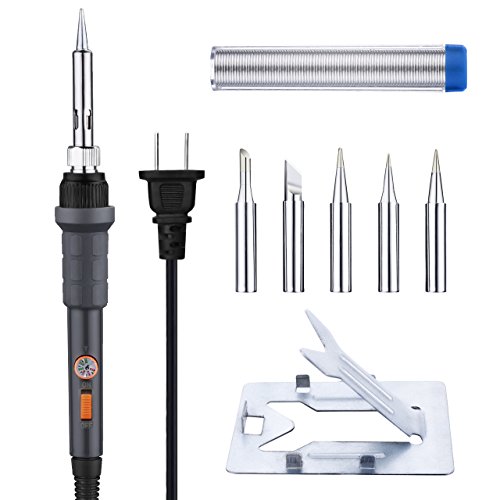 OMorc Soldering Iron with ON/OFF Switch 60W 110V Electric Soldering Iron Kit – Adjustable Temperature, 5pcs Different Tips, Stand, Solder Wire for Variously Repaired Usage
