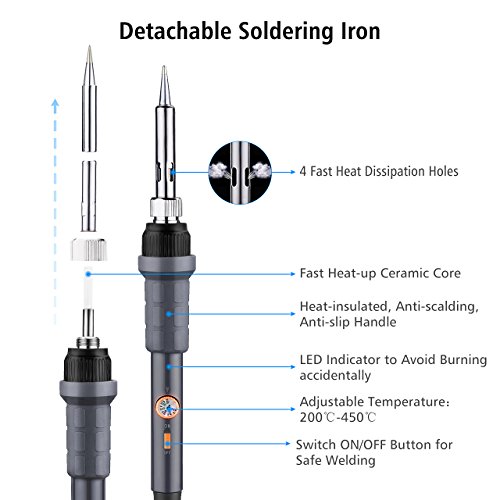 【Heat Up Quickly】The 60w soldering iron heats up very fast with inner-heated ceramic induction technology and has a temperature dial with range of 200℃ to 450℃ for you to adjust temp easily