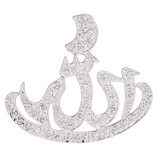 -. Title : Sterling Silver ALLAH Pendant Fifty-two 2mm (.03 ct) CZ Stones, 1 15/16 inch tall