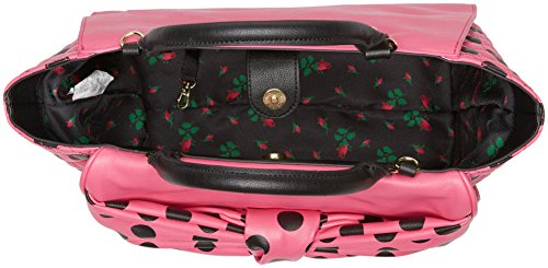 Have fun with your styles with this bold Dots Enough Satchel bag from Betsey Johnson. This cute bag features a pink colored PU leather with quilted details at sides, dual adjustable carrying handle with detachable and removable crossbody strap, flat base to provide upright structure, fully lined interior with back pockets, and magnetic snap closure.Feature