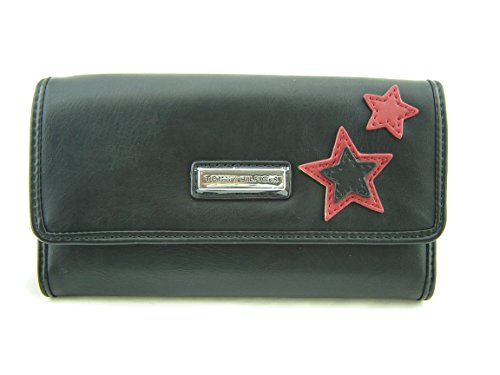 TOMMY HILFIGER STAR APPLIQUE FAUX LEATHER WALLET BLACK