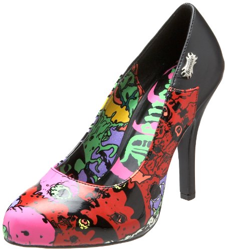Studio : Pleaser Publisher : Pleaser Binding : Apparel Product Description Heel Height: Approx. 4 1/2' Tall. Demonia Zombie-01 These funky horror inspired pumps have a classic shape with a fun edge. This classic high heel has an elegant shape, but a funky, multicolored zombie themed screen print. 0