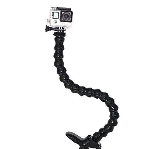 Features: - The Jaws and gooseneck can be used together or separately.? - The Jaws?has a very tight grip without risk of losing you camera. Rubber strap attachment in Jaws Mount minimizes vibration of video shooting. - Clamps your camera firmly on handlebar, desktop, etc; optional gooseneck adjusts to enable a variety of shooting angles like a selfie stick. - Mount your cameras on anything in size from 0.25" to 2" (0.6cm to 5cm) in diameter. - Compatible with GoPro Hero 6/5, Hero5 session, Hero4, Hero3 , Hero3, Hero2, Hero1 and most action cameras. Package Included: 1x Flex Clamp Mount 1x Adjustable Goose Mount 1x Quick Release Buckle 1x Screw Note: Accessories only, the cameras in pictures not included.