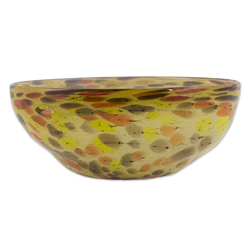 NOVICA Hand Blown Beige and Yellow Glass Eco-Friendly Bowls, 135 oz. 'Amber Fantasy'