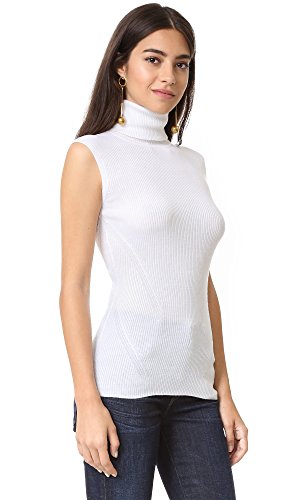 A DVF turtleneck sweater in a delicate wool-silk blend. Diagonal cables accent the ribbed knit. Sleeveless.