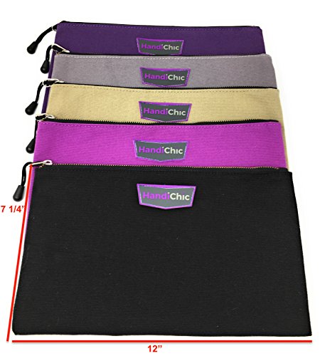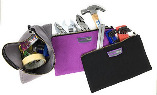 - MULTI-PURPOSE 5 pack of 12 x 7.5 machine washable pouches in vibrant colors contain reinforced seams and sturdy Zipper are designed for tools, but can be used as a tool bag, banking bag, toiletry bag, organization bag, travel accessories bag, artist bag, brush bag, makeup, electronics bag, construction bag, zipper tool pouch, tool bag, etc!