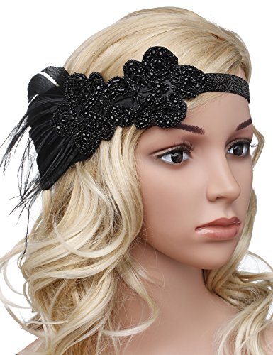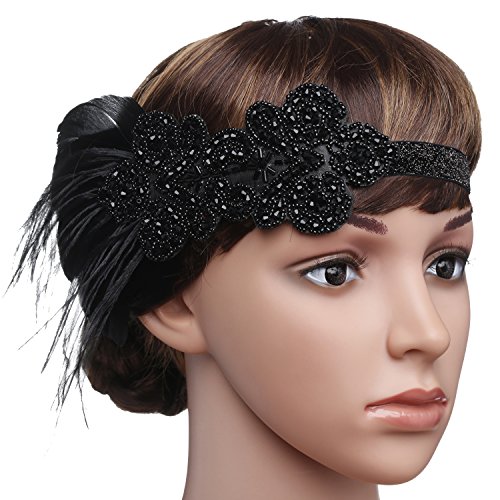 BABEYOND Babeyond 1920s Stil Stirnband mit schwarzer Feder Inspiriert von Der Grosse Gatsby Accessoires fur Damen Freie Grosse