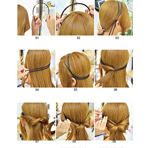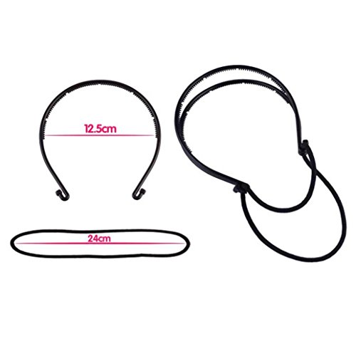 specification: Quantity: 1 PC Gross weight: Approx.30g Color: Black Matter:Plastic / Resin 100% brand new and high quality Item Type: Braid Maintenance Ingredient: Synthetic resin In the process of using, if you feel you should slip hoop, you should fixed one side firstly by your hand,and then go to hook the other side. Baby size: Double hoop size: width 0.4cm!. Band length: half the length of about 24cm. The crude rubber band about: 0.5cm How to Use : Put the Rubber Band In The Head To Take The Appropriate Location Use The Headband To Bypass Around The Head Back The Rubber Band Is On The Hook Of The Headband Take Appropriate Hair Through The Headband Repeat The Above Steps, And Finally With U-Shaped Needle Fixed Package Included: 1xHeadband(No Retail Packaging) 0
