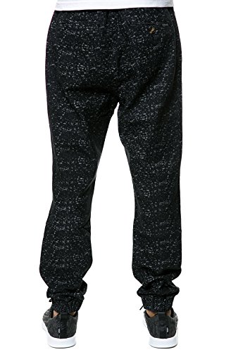 Studio : Ezekiel Publisher : Ezekiel Binding : Apparel Product Description Ezekiel Men's Voltage Jogger. The Ezekiel Voltage Jogger in Black Elasticized waist with drawstrings Allover print Side pockets Tapered legs Banded cuffs 12" rise, 29" inseam Machine wash cold Cotton blend Imported By Ezekiel Model Stats Gibran is wearing a size 32. Our model Gibran is 6' tall with a 32" waist. 0