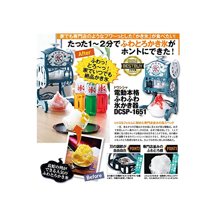 원본상품명: ドウシシャ 電動本格ふわふわ氷かき器 ブル 2016年モデル DCSP-1651