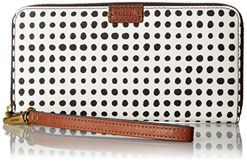 -. Title : Fossil Emma Rfid Large Zip Clutch White with Black