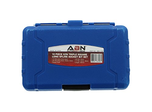 ABN XZN Triple Square Spline Bit Socket Set, 10 Piece Extra Long 4-Inch Kit ¼“ ⅜” and ½” Drive