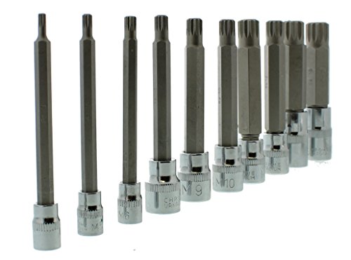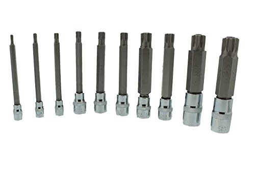 10-piece XZN Triple Square Spline Bit Socket Set includes: 1/4“ Drive in 4mm, 5mm, & 6mm. 3/8“ Drive in 8mm, 9mm, 10mm, 12 mm & 14 mm. 1/2“ Drive in 16mm & 18mm; all tamper proof