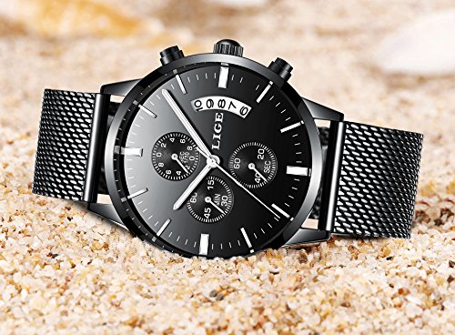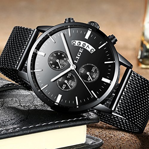 -. Feature : COMFORTANLE WEARING:The low weight and the smooth band-design,not burden your wrist. / MULTIFUNCTION: 3 functional little sub-dials for chronograph minute,chronograph second ,chronograph 1/1000 second.Clear date display.3 buttons in the case to Start/Pause,Adjust time/calender and Reset. / NICE GIFT:A luxurious fashion gift for graduation,birthday,wedding,etc.A suitable gift for father,boy friend or other male classmates and colleague. / Mesh Milanese Bracelet : Mesh Milanese Bracelet makes the watch convenient to everybody! The luxurious fashion design exterior suits every business man.Wearing it could attend all business occasions. / GREAT AFTER-SALE SERVICE:If customers have any question,please contast us quickly,we will try our best to give you the most satisfying reply.
