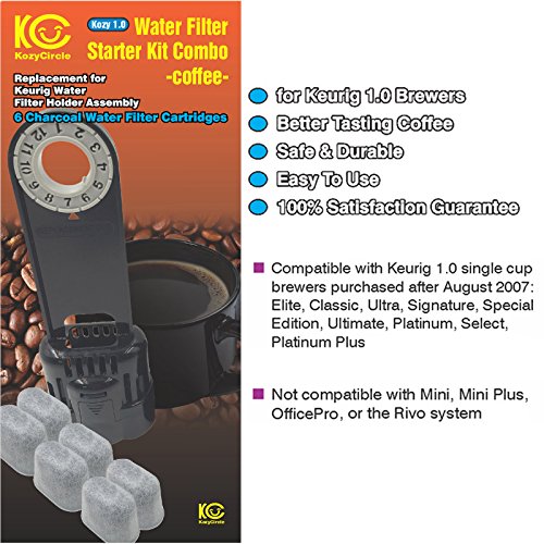 6 Charcoal Water Filters and Water Filter Holder Starter Kit Combo for Keurig 1.0 Coffee Machines by KozyCircle