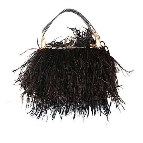-. Title : Zakia Real Natural Ostrich Feather Evening Clutch Shoulder Bag Party Bag