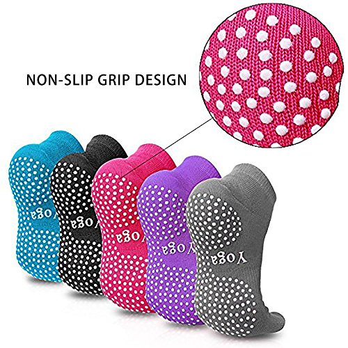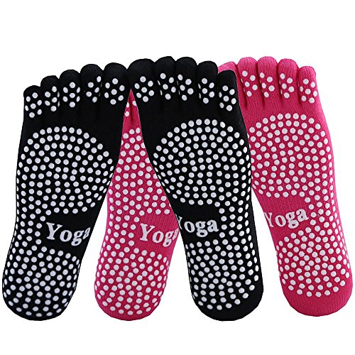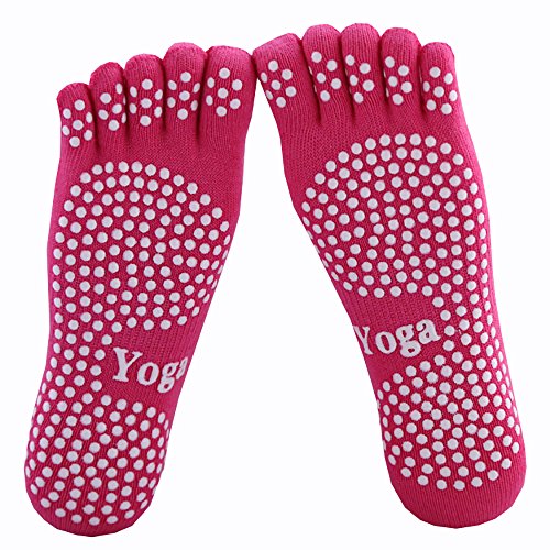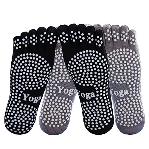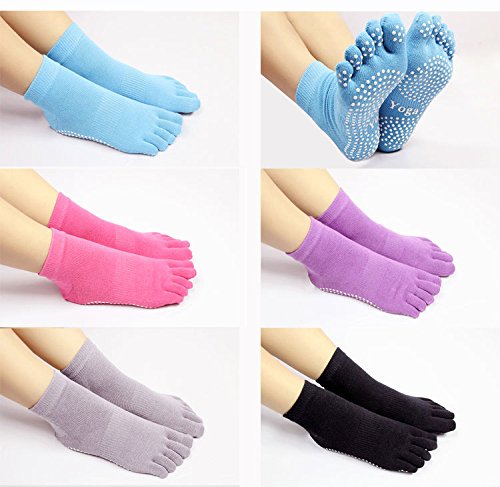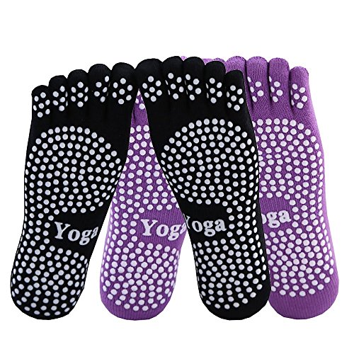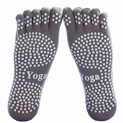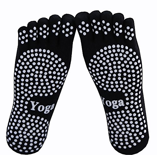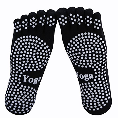 -. Feature : COTTON YOGA TOE SOCK - Cotton 95% + Spandex 5%. Medium thickness available for all the season. Perfect ventilation tough and soft. / NON-SLIP GRIP DESIGN - There are many white Environmental non slip dots on the bottom of the sock.It can help you better on the floor or mat security balance. / FIVE TOE SEPARATION - Let you feet more freedom when excises,as well as keeping toes warm. / ONE SIZE FITS MOST (5-8.5). Perfect for yoga, Pilates, dance, barre, martial arts, home, travel and studio use.