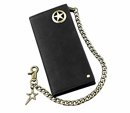 -. Title : High Qualtiy Real Leather Gold Star Vintage Men's Long Chain Wallet L24