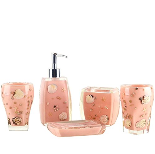 -. Title : VIC-Decor,5PCS Vintage Classic Bathroom Bath Resin Decor Accessories Collection Set Hotel & Home-Soap dispenser Toothbrush Holder, Toothbrush Cup, Soap Dish : Starfish Seashell Pink