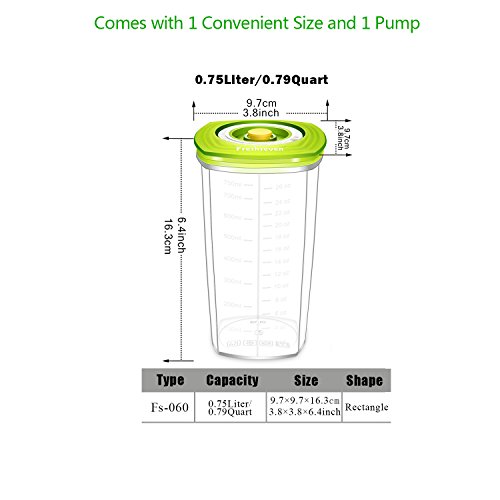 Freshseven Vacuum Seal Air-tight Fresh Juice Container Reusable Yogurt Cup Instant Marinator with Air Pump- 26 Oz. (750 ml) with Measuring Scale Made of Tritan BPA Free Dishwasher Safe Leak Proof