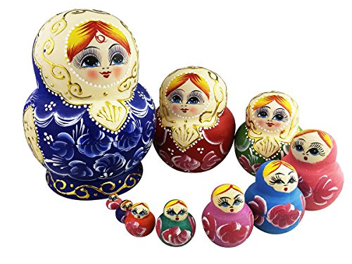 -. Feature : Russian traditional craftwork:matryoshka nesting dolls / Cute blond little girl pattern and each doll is different color / It's wooden and handmade,great quality / Contains 10 dolls with 10 different pattern,stack into one another to appear as one / Kids'perfect toy and special decoration to house