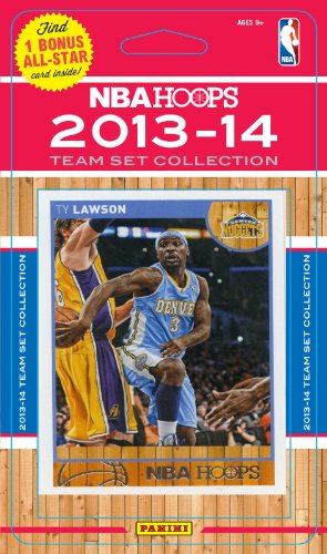 [Product Information]- This is a brand new 2013 / 2014 Denver Nuggets Hoops Basketball Factory Sealed Team Set including Darrell Arthur, Danilo Gallinari, Evan Fournier, JaVale McGee, Ty Lawson, Wilson Chandler, Kenneth Faried, JJ Jickson, Nate Robinson, Randy Foye. This set also includes one randomly inserted bonus card of either Kobe, Lebron, Rose or Durant.