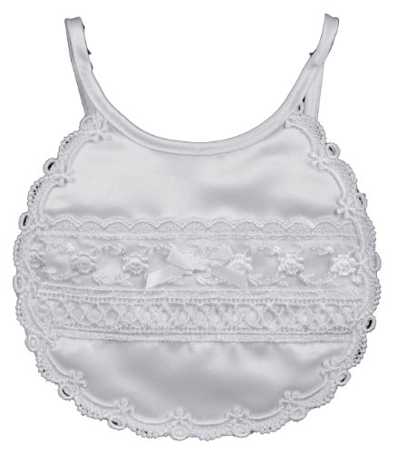 -. Feature : Satin Laced Christening Bib / Made in the USA