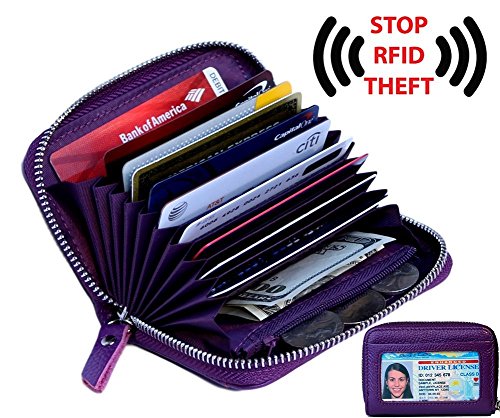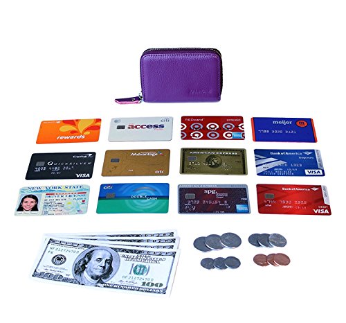 Women's Genuine Leather Credit Card Holder RFID Secure Spacious Cute Zipper Card Wallet Small Purse with ID Window