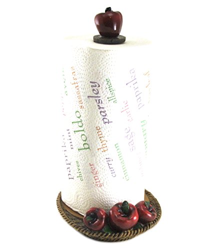 DECORATIVE COUNTRY RED APPLES TABLETOP PAPER TOWEL HOLDER RACK, 14-INCH, KITCHEN ACCENT