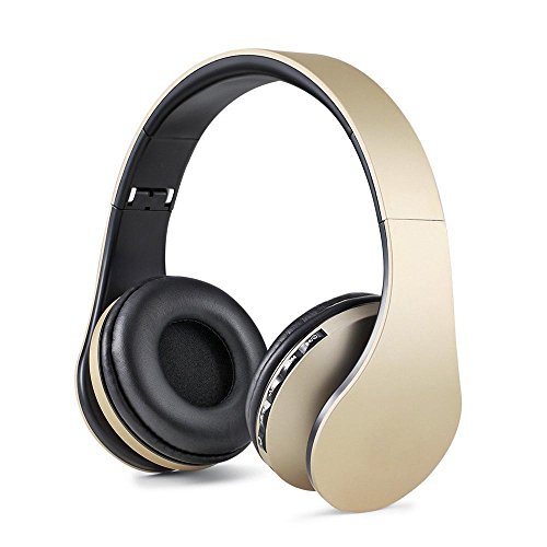 -. Title : Gold Bluetooth Headphones with 3.5mm Audio Cable Stereo Earphones with Mic Support SD Card and FM Wireless Over Ear Headphones-Mini Kitty