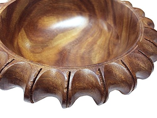Wooden Handmade bowl with cutter design work and good finishing with borwn color