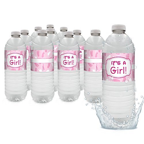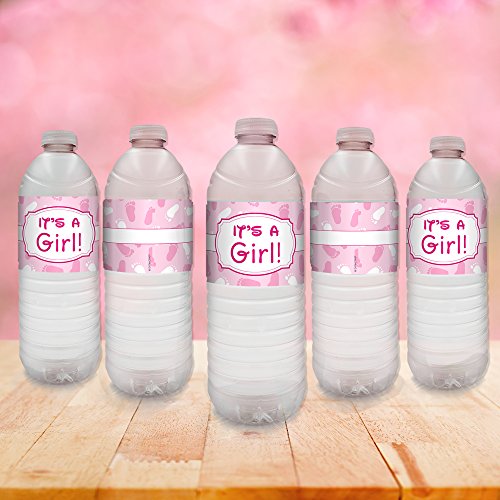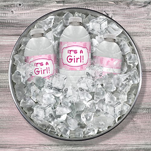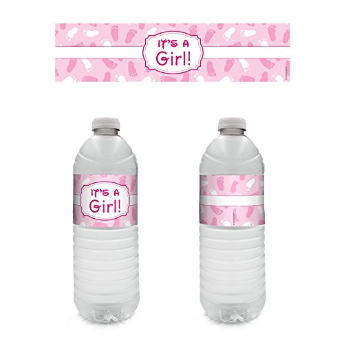 Pink It's a Girl Baby Shower Favor Water Bottle Labels, 20 Count