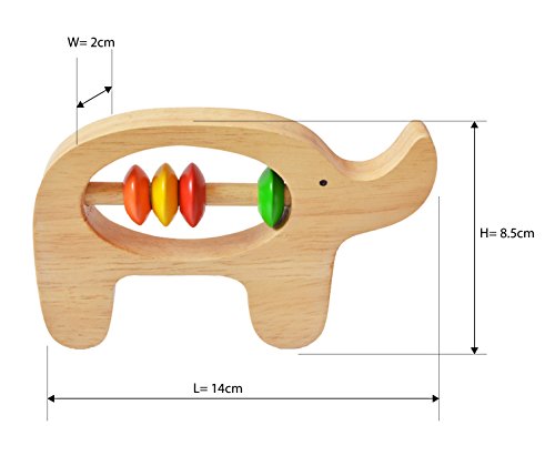 Gentle rattling sounds soothe and engage the baby, drawing attention toward the direction of the sound. This rubber wood toy provides tactile, sonic and visual stimulation.