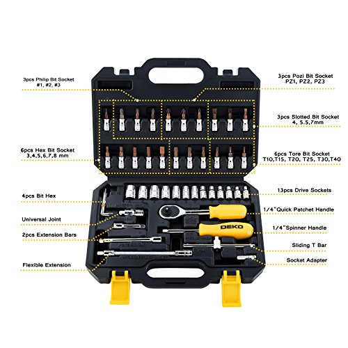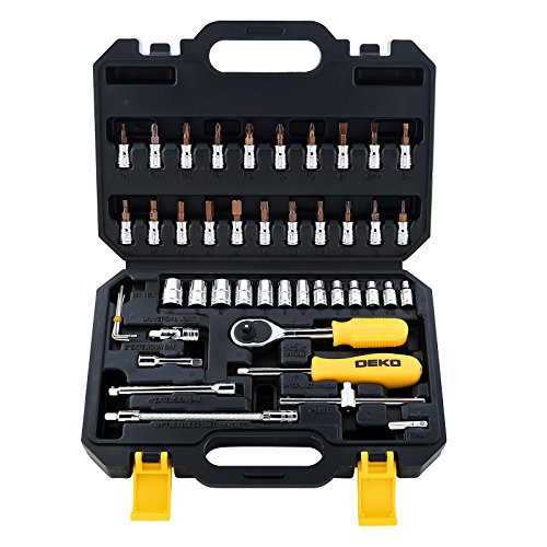 DEKOPRO Socket Wrench 46-Piece Mixed Auto Repair Tool Set Hand Tool Kit with Plastic Toolbox Storage Case Black