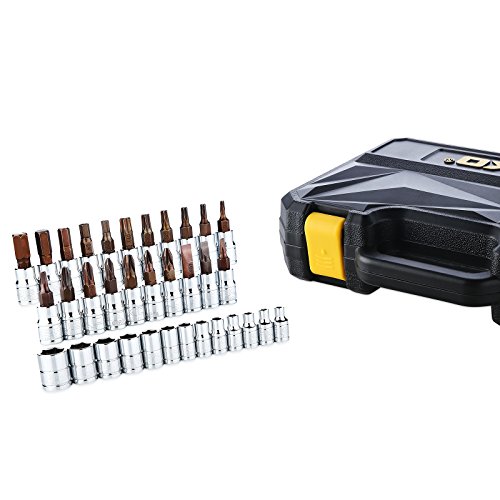 - COMPLETE VARIETY:Includes a collection of the most popular sockets, ratchets, wrenches, hex key, bits, T-head breaker and universal joint and etc.