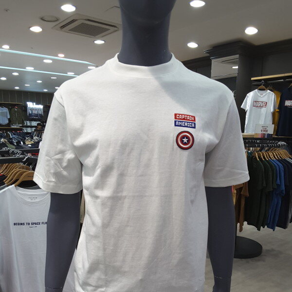 어벤져스 콜라보 티셔츠입니다오버핏으로 나온 제품이며 왼쪽 가슴과 등에 레터링이 포인트로 들어간 제품입니다.