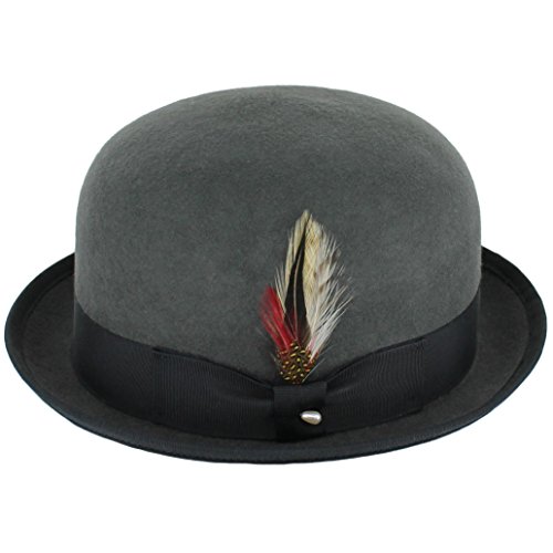 -. Binding : Apparel -. Brand : Belfry Hats -. Department : mens -. Feature : Timeless Derby Bowler Style - Features a 1.5-inch rolled brim and a feather-topped 4-inch crown to provide a traditional derby hat look / Long-Lasting Construction - Made in the U.S. with fine-quality materials, including 100 percent wool felt and a genuine leather sweatband / Designed for All-Day Comfort - Built with a comfortable leather moisture-wicking interior band that keeps you cool and dry during several hours of wear / Multiple Sizes - Perfect for all head sizes; Comes in small, medium, large and extra-large and two colors for a tailored-to-you fit / Fast Shipping and Free Returns - Get your Belfry Deuce quick with immediate shipping and take advantage of free returns if you're not completely satisfied -. Label : Belfry Hats -. Manufacturer : Belfry Hats -. ProductGroup : Apparel -. ProductTypeName : HAT -. Publisher : Belfry Hats -. Studio : Belfry Hats -. Title : Belfry Deuce 100% Wool Felt Stingy Brim Men's Derby Bowler Hat in 2 Colors