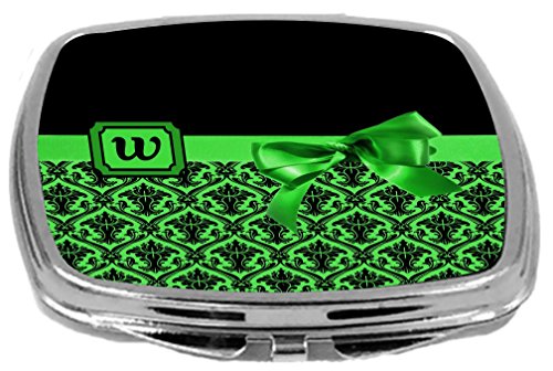 Rikki Knight Letter-W Monogram Damask Bow Design Compact Mirror, Green, 2 Ounce