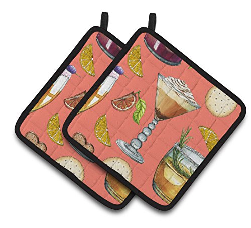 Caroline's Treasures Drinks & Cocktails Salmon Pair of Pot Holders, 7.5HX7.5W, Multicolor