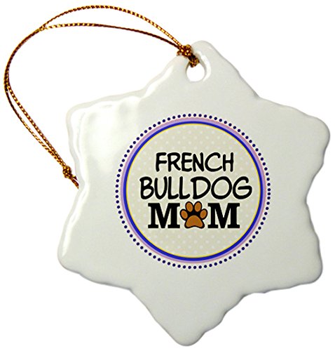 3dRose orn_151744_1 French Bulldog Dog Mom Doggie Mama by Breed Paw Print Dog Lover Proud Pet Owner Snowflake Ornament, Porcelain, 3"