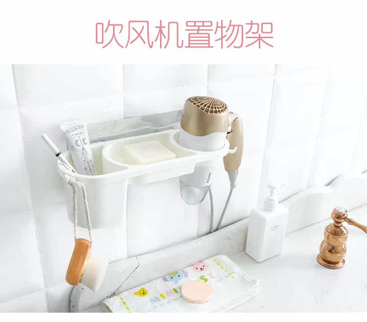 北欧式免钉卫生间吹风机收纳架浴室 无痕壁挂洗漱用品置物架
