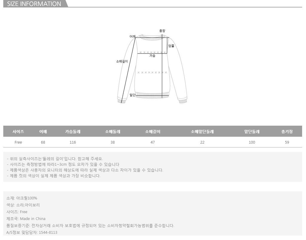 모델의 착용 컬러는 소라 입니다.