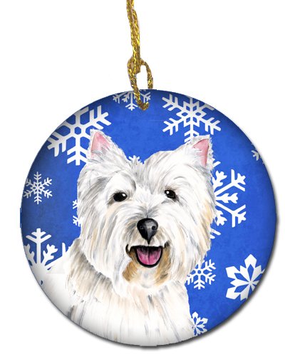Caroline's Treasures SC9370-CO1 Westie Winter Snowflakes Holiday Ceramic Ornament, Multicolor